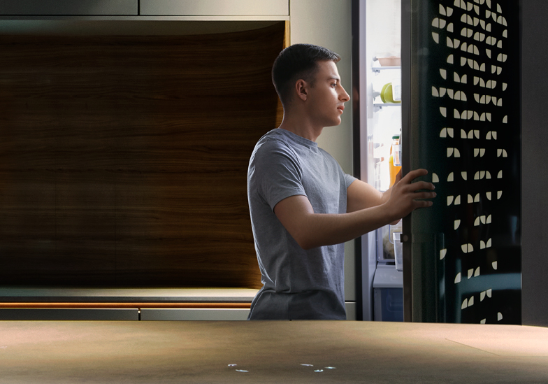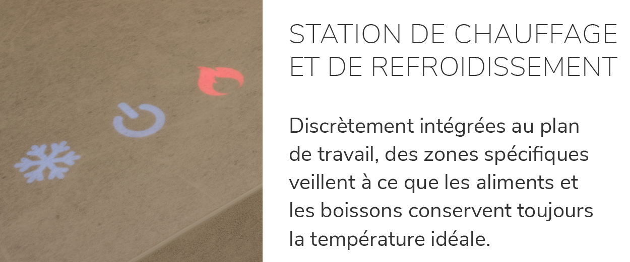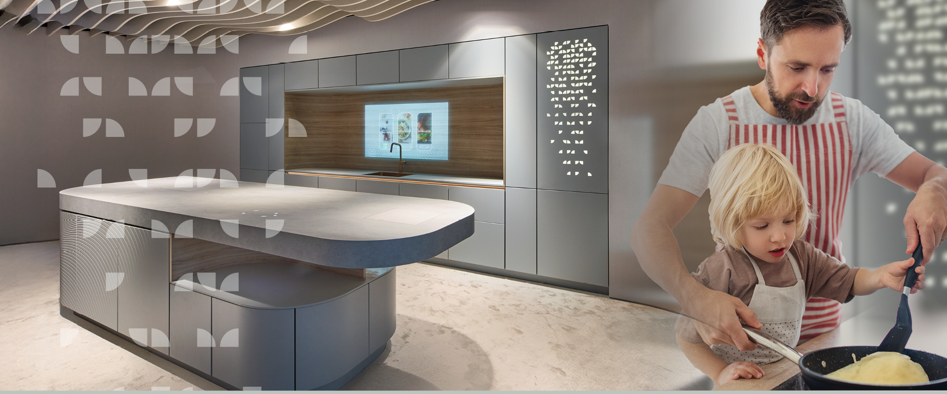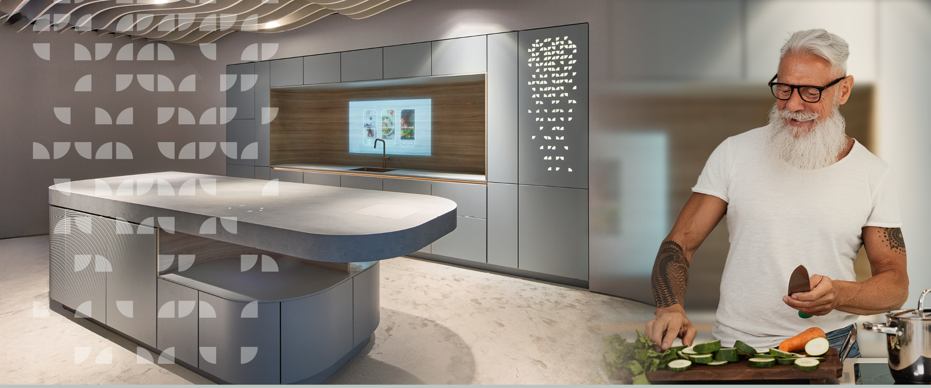 L’intelligence artificielle n’assure pas seulement une plus grande sécurité, elle apporte en outre une contribution précieuse à une meilleure santé au quotidien. Les caméras installées reconnaissent les plats et les ingrédients qui se trouvent sur le plan de travail et affichent les nutriments et les calories sur l’écran placé dans la niche de la cuisine.